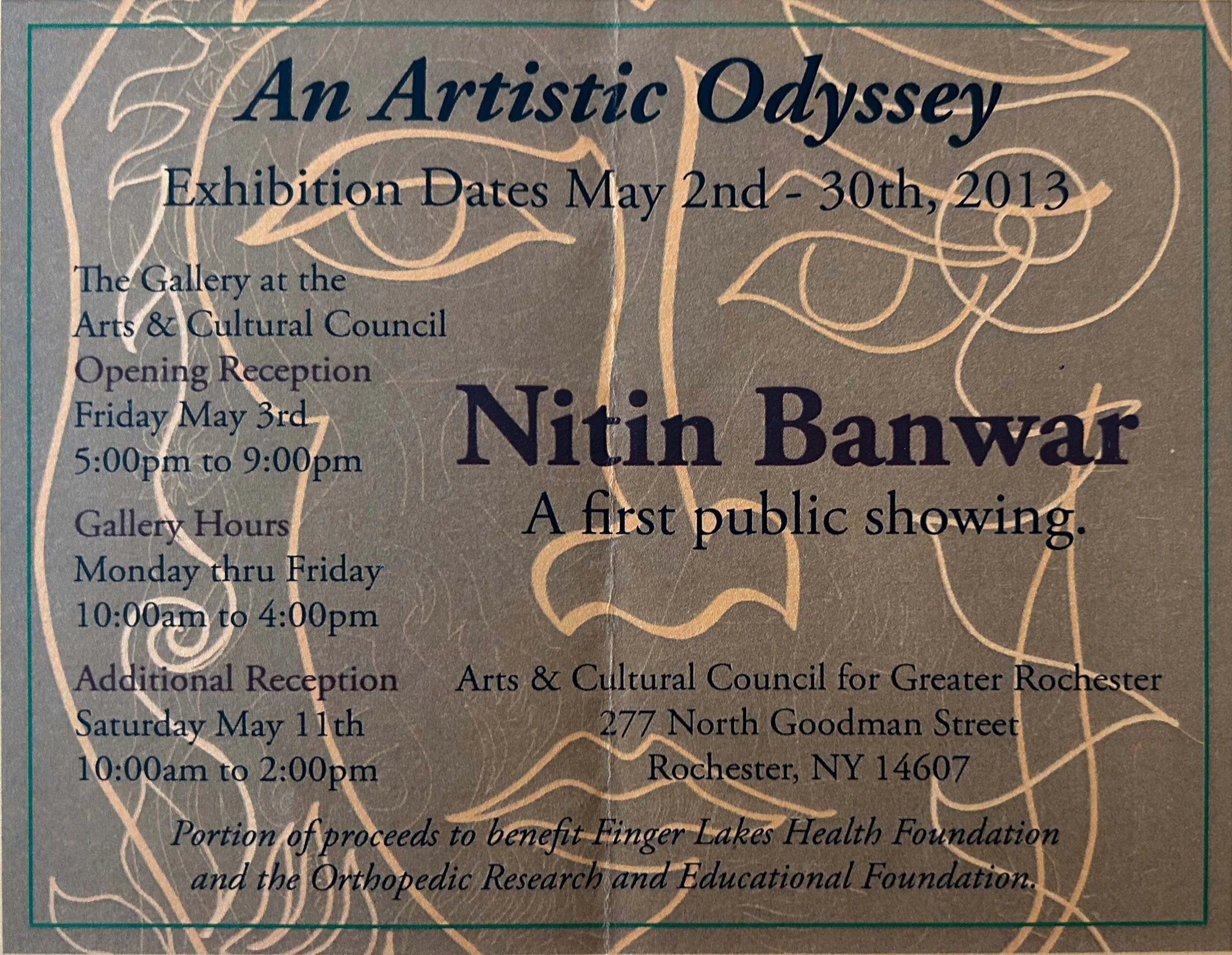 Orthopedic surgeon Nitin Banwar unveiled his artistic side in "Mythologies and Cultures," his debut public exhibition. This collection at The Gallery at The Arts & Cultural Council blended traditional and digital art, reflecting Banwar's rich cultural heritage and his journey from an immigrant to a medical director and artist. The exhibition, a mix of fine art and collaborative digital pieces, highlighted Banwar's multifaceted life and interests, benefiting the Finger Lakes Health Foundation and the Orthopedic Research and Education Foundation.
